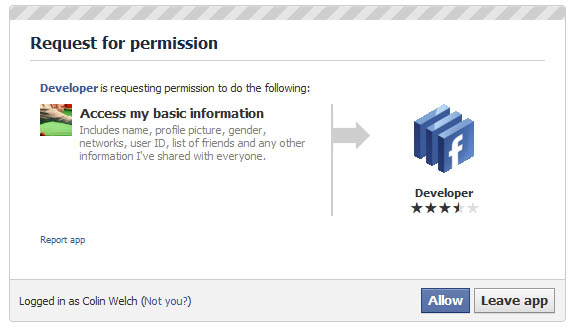 Log in your Facebook account (the one you admin your Fan page with). The quickest way to find the Developer app is just to search for "Developer" in the Facebook search bar. Click on the app and it will ask for permission to access your basic data - click "Allow"