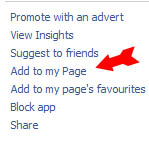For now. we just want to add it to our Fan Page to make sure everything looks OK - so click on Add to My Page in the left hand menu.