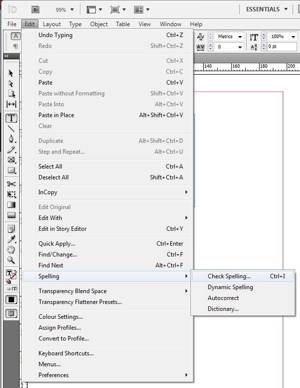 Spell Check in InDesign–