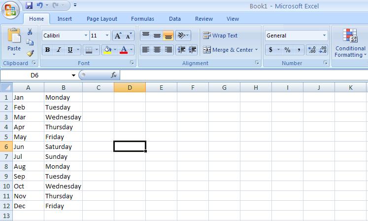 Let's demonstrate this with months. Type "January" in to a cell in your spreadsheet. Highlight the cell and you'll see that there's a little black arrow in the bottom right hand corner. Carefully click on this arrow with the mouse (a bit fiddly!) and hold the button. Now drag the box downwards a few cells and release, and Excel will fill in the subsequent months for you. Clever eh! Even better, it will also recognise abbreviations, such as Jan, Feb, Mar etc...