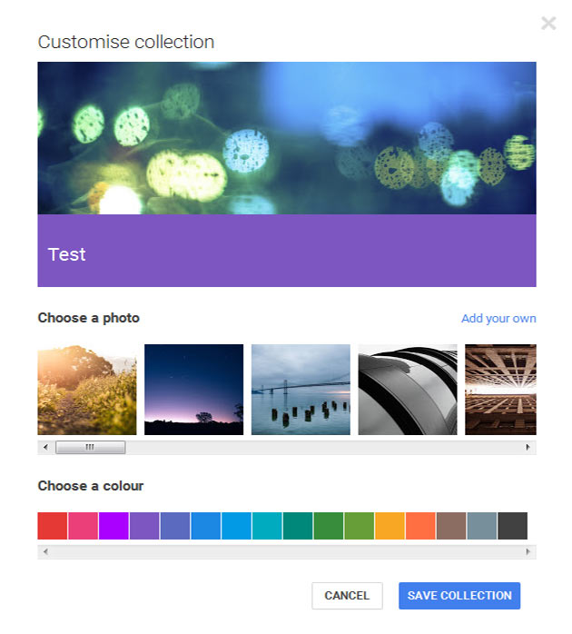 After creating your collection you are able to ‘customise’ your collection image and colour scheme. Note – it is not possible to change the visibility settings of a collection after it has gone live. From here on the collection and the content contained within is completely at the discretion of the user.