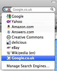 If you've got the opposite problem and your search bar (at the top right-hand corner of the browser window) takes you to Google.com, make your default search engine Google.co.uk:
