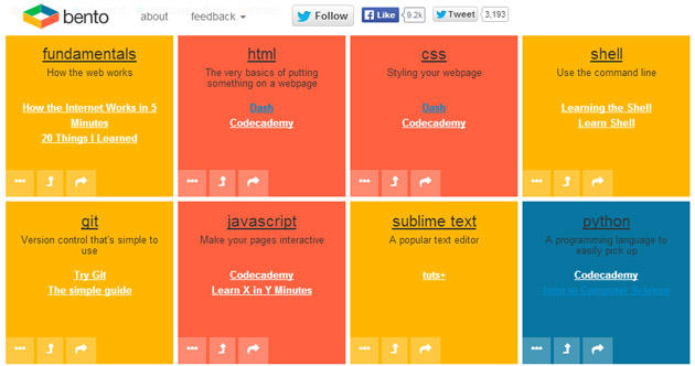 Bento is a fantastic resource put together by Jon Chan, a web developer at Stack Overflow. IT provides a wide range of learning resources for every coding language you could possibly think of.
