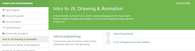 The intro course focuses on drawing and animationwhich makes a change to the courses that are based on building websites and apps.
