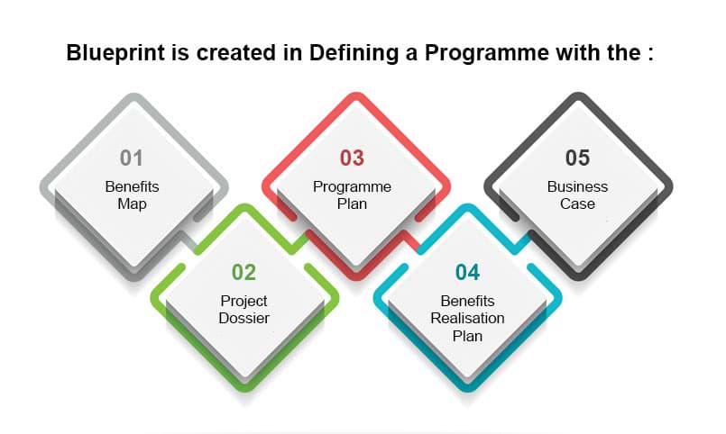 It is created in Defining a Programme with the Benefits Map, Project Dossier, Programme Plan, Benefits Realisation Plan and Business Case. The Blueprint will then be reviewed at the end of each tranche.
