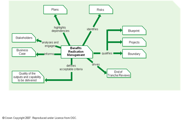 Benefits management is the activity of identifying, optimising and tracking the expected benefits through to their realisation. It is a core activity and a continuous management process running throughout the programme.