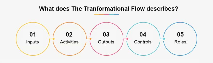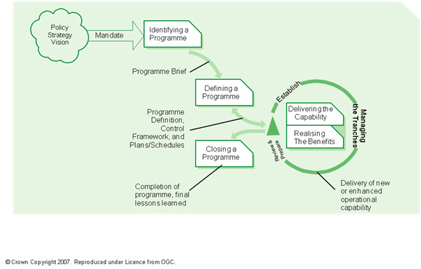 Each process describes inputs, activities, outputs, controls and roles. There are also typical responsibilities summarised in a table at the end of each chapter. Please note that these may need to be adapted and extended for each programme. The Transformational Flow is represented at the centre of the diagram -