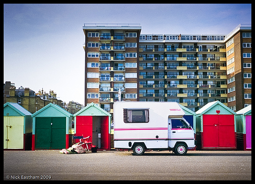 Although I didn't grow up in Brighton & Hove, I have lived here longer than anywhere else and condsider it my home town. Since moving to Hove I have not lived any further than a few streets from the seafront and have consequently spent a lot of time down there. This photograph is just a typical scene that I might see any day of the week as I cycle to work and back, it is colourful, a bit traditional, a bit modern and also a little bit odd, like Brighton & Hove.